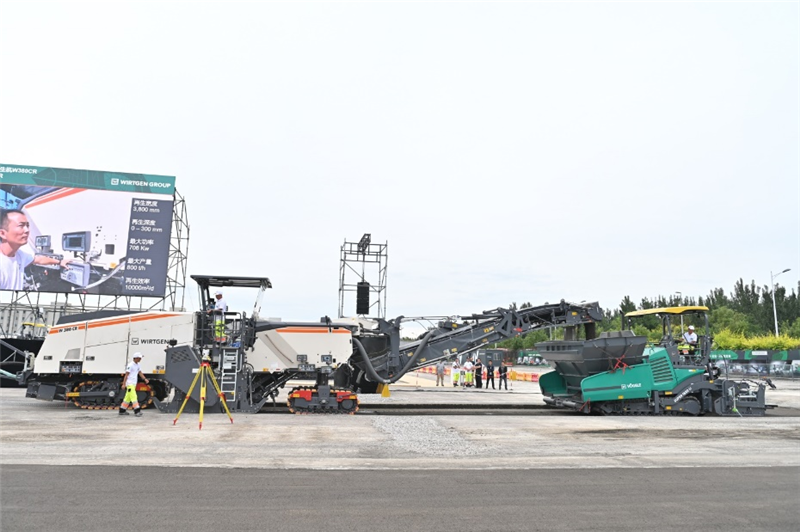 在技術(shù)節(jié)現(xiàn)場(chǎng),來賓通過專家講解以及設(shè)備動(dòng)態(tài)演示感受到了 W 380 CR 的路面再生工藝流程。實(shí)踐證明通過應(yīng)用基于同步攤鋪的高性能路面再生技術(shù),道路養(yǎng)護(hù)工期可以縮短一半、減少碳排放超過 60%、降低資源能耗超過 50%。