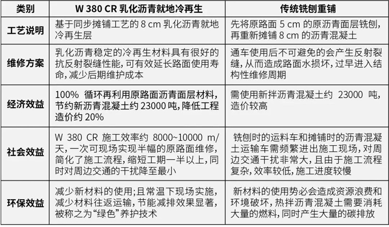 同時也展示了 W 380 CR 就地冷再生機(jī)多樣化的施工能力,不僅能勝任泡沫瀝青冷再生、水泥冷再生,同樣也適用于乳化瀝青冷再生,為綠色低碳道路養(yǎng)護(hù)提供了多種可行方案。
